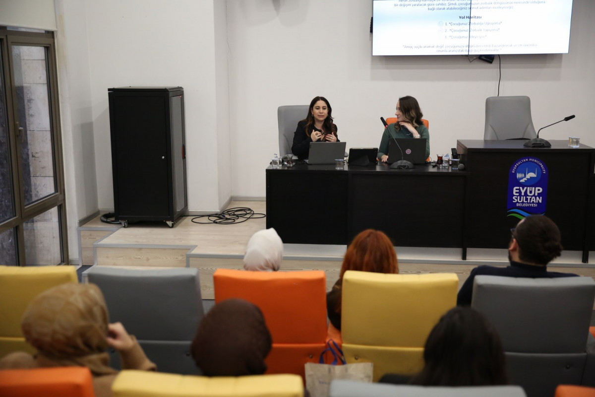 Eyüpsultan Belediyesi Başkanlık Binası Mehmet Akif Ersoy Salonu’nda gerçekleştirilen konferansta, Çocuk ve Ergen Psikoloğu Hacer Karakaş Avcı ile Avukat Derya Yaman katılımcılarla bir araya geldi. Programda, günümüzde çocuklar ve gençler arasında giderek yaygınlaşan akran zorbalığının psikolojik, sosyal ve hukuki boyutları ele alındı.