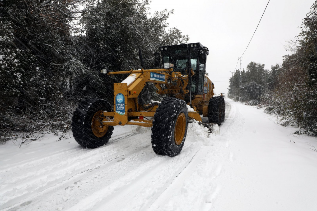 Eyüpsultan Belediyesi karla mücadele ekipleri gece saatlerinde başlayan yoğun kar yağışı ile birlikte ilçe genelinde 29 mahallede 52 araç ve 118 personelle görev aldı.