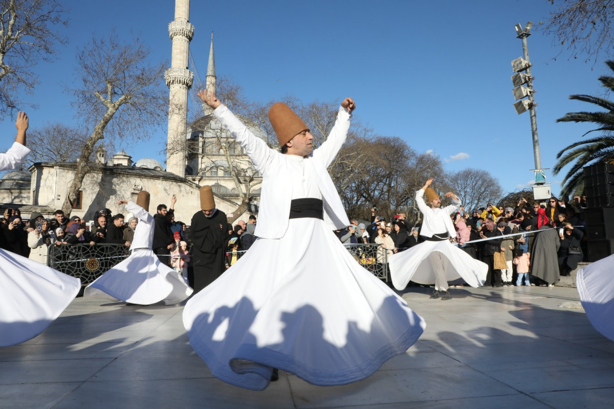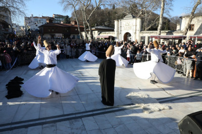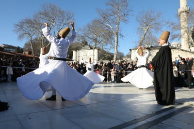Sema gösterisi meydanı dolduran vatandaşlar tarafından büyük bir hayranlıkla izlendi.