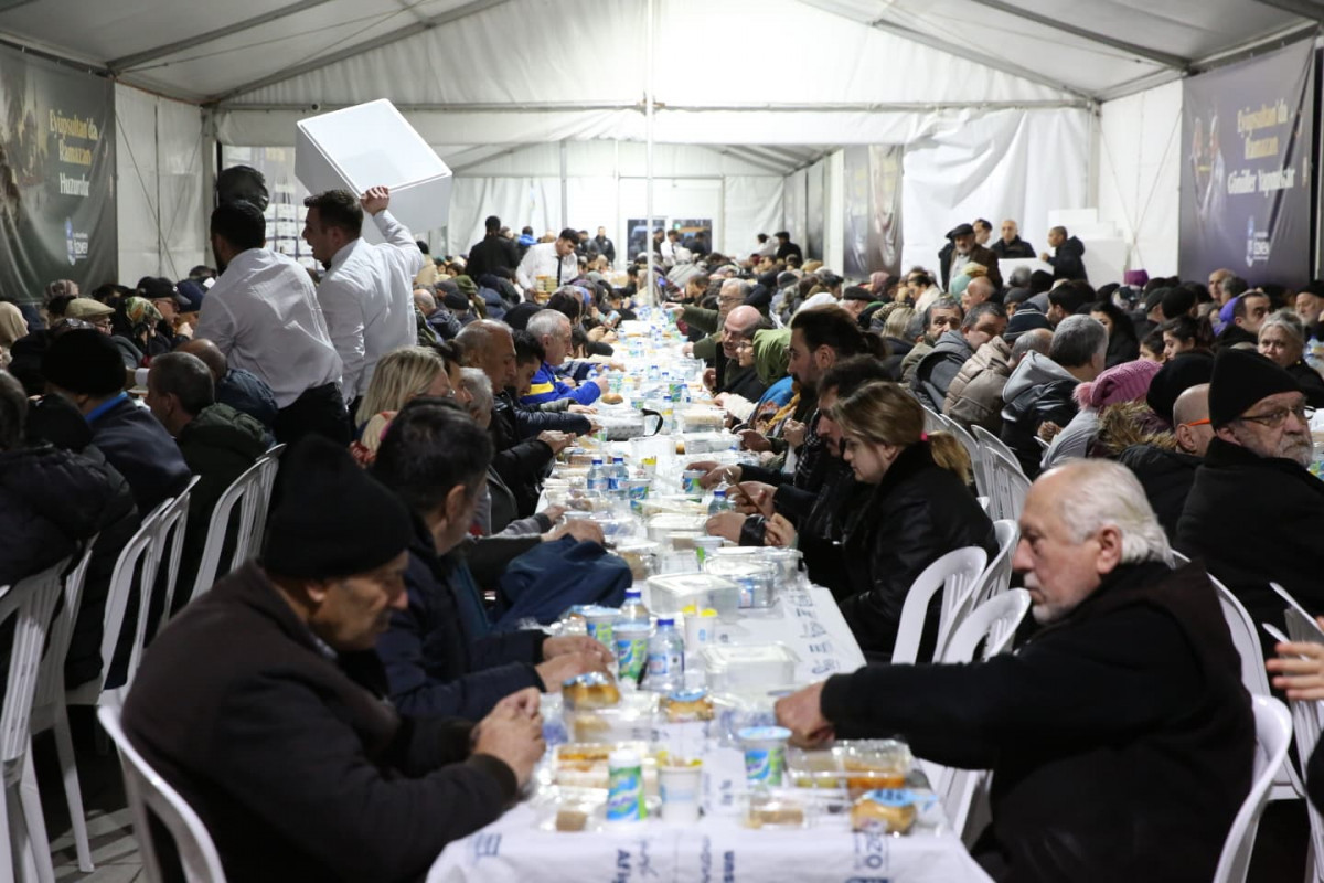 Eyüpsultan Belediye Başkanı Dr. Mithat Bülent Özmen’in ev sahipliğinde düzenlenen iftar sofrasında binlerce vatandaş komşuluk, kardeşlik duyguları içerisinde oturulan gönül sofrasında hep birlikte iftar yapmanın mutluluğunu yaşıyor.