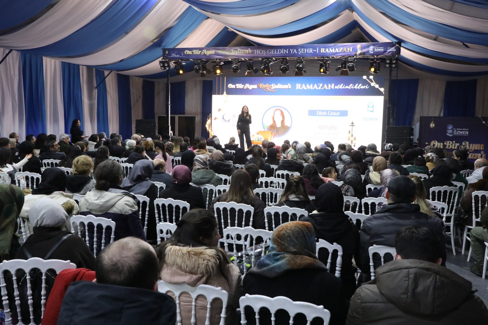 Aile Danışmanı, Eğitimci, Yazar Dilek Cesur, Eyüpsultan Belediyesi’nin Bahariye Caddesi üzerinde, Sultan Reşad Türbesi önünde (Reşadiye İmam Hatip Ortaokulu önü) kurduğu Ramazan çadırında yaptığı konuşmada sabırlı ebeveynliğin çocukların duygusal ve sosyal gelişimine katkılarını ele aldı, merhametli ve sağlıklı nesiller yetiştirmek için pratik bilgiler verdi ve öneriler sundu.
